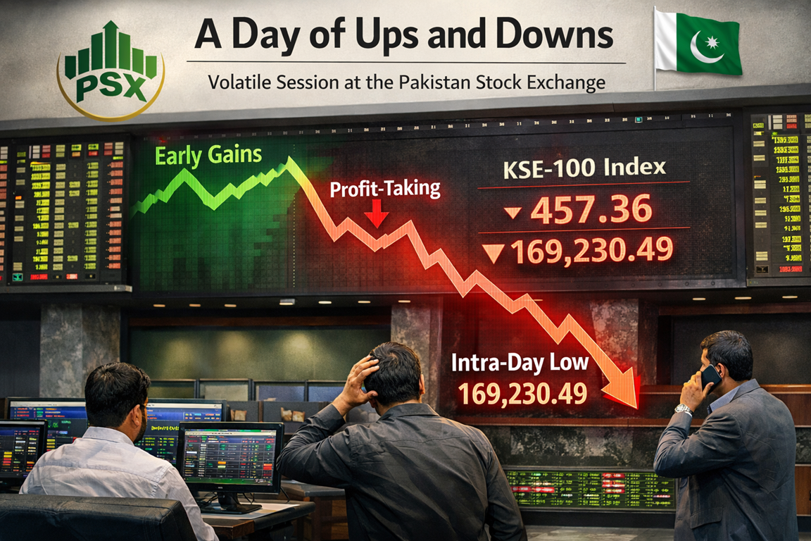 The Pakistan Stock Exchange (PSX) experienced a range-bound and volatile trading session on Wednesday, with the benchmark KSE-100 Index ending marginally in the red after swinging between gains and losses throughout the day.